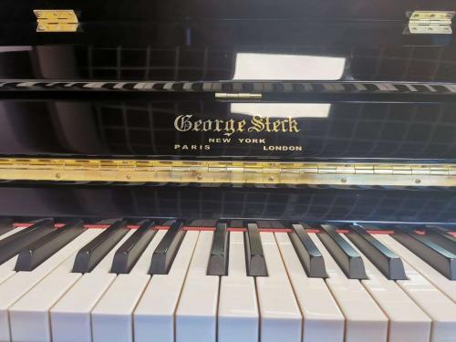 Ce piano d'occasion de la marque George Steck est un modèle d'expression, de 122 cm de hauteur. C'est un piano bien équilibré, sa mécanique équipée de marteaux "Japan Special"lui confère un son puissant dans les graves , chaud dans les mediums, avec des aigus cristallins. Ce piano est équipé d'un système silencieux Genio MPS 2000 pour pouvoir jouer au casque sans déranger son entourage.